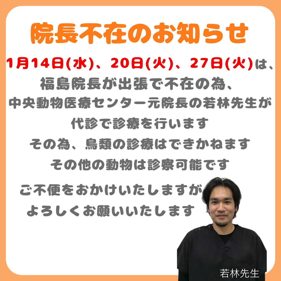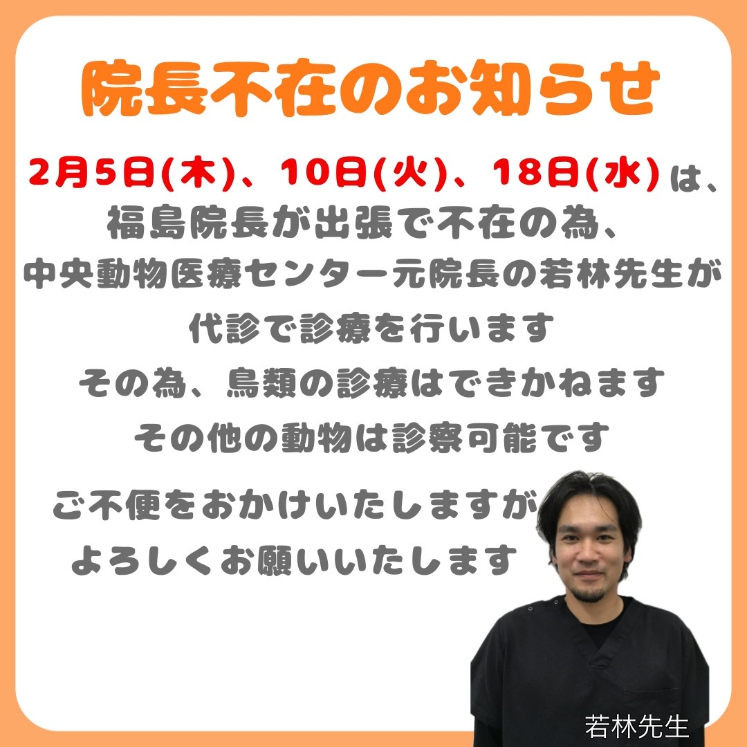 - 【福島院長不在のお知らせです】